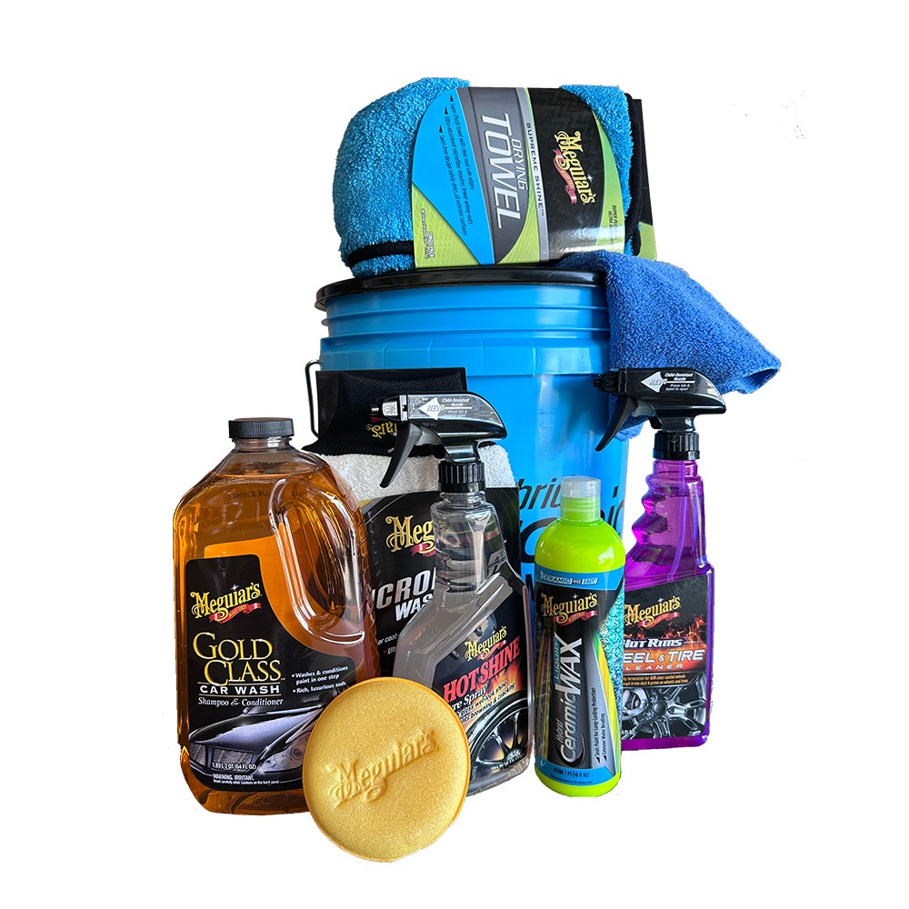 Pakkinn kemur í Meguiar’s fötu sem inniheldur: